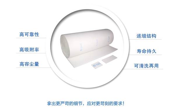 3、中效過濾棉的使用時(shí)間一般為3-6個(gè)月,當(dāng)出現(xiàn)風(fēng)面透塵或者發(fā)黑時(shí),必須馬上更換。
