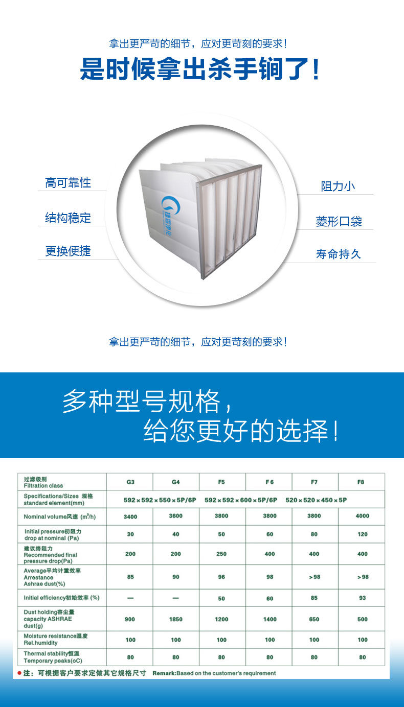 | 過濾級(jí)別 | G3 | G4 | F5 | F6 | F7 | F8 |