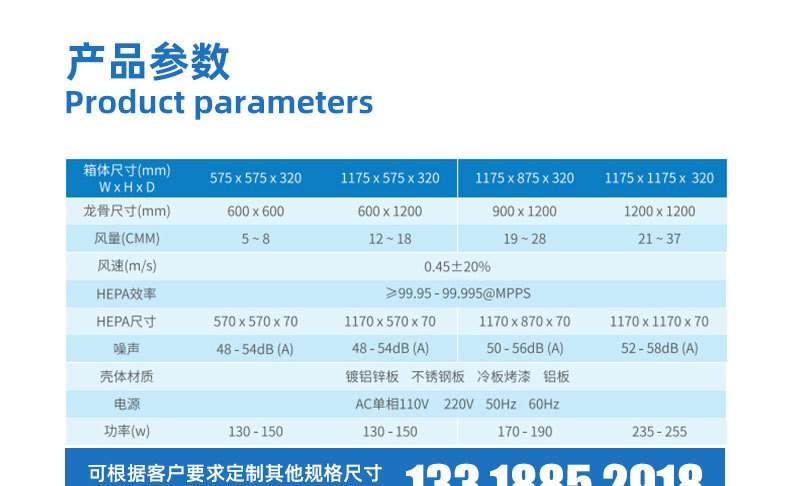 | 915*610*320 | 80~160 | 1100 | H13-H14 |